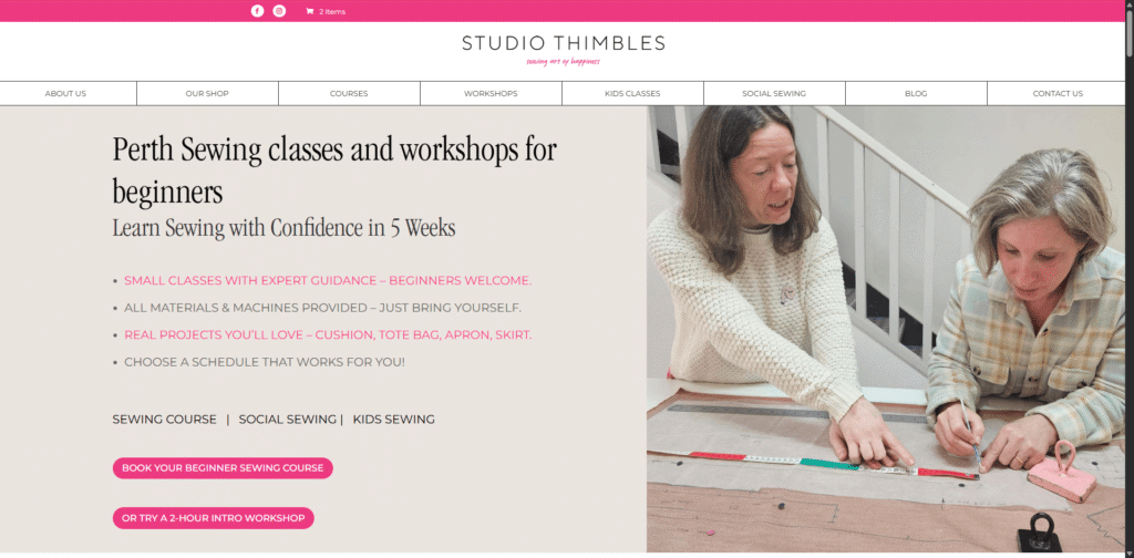 A custom WordPress redesign for a creative Perth studio, featuring a streamlined booking system for beginner sewing workshops and kids’ classes.
