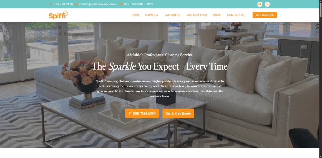 A clean, trust-focused website for a professional cleaning service in Adelaide, featuring an instant quote system and localized SEO targeting for residential and commercial clients.